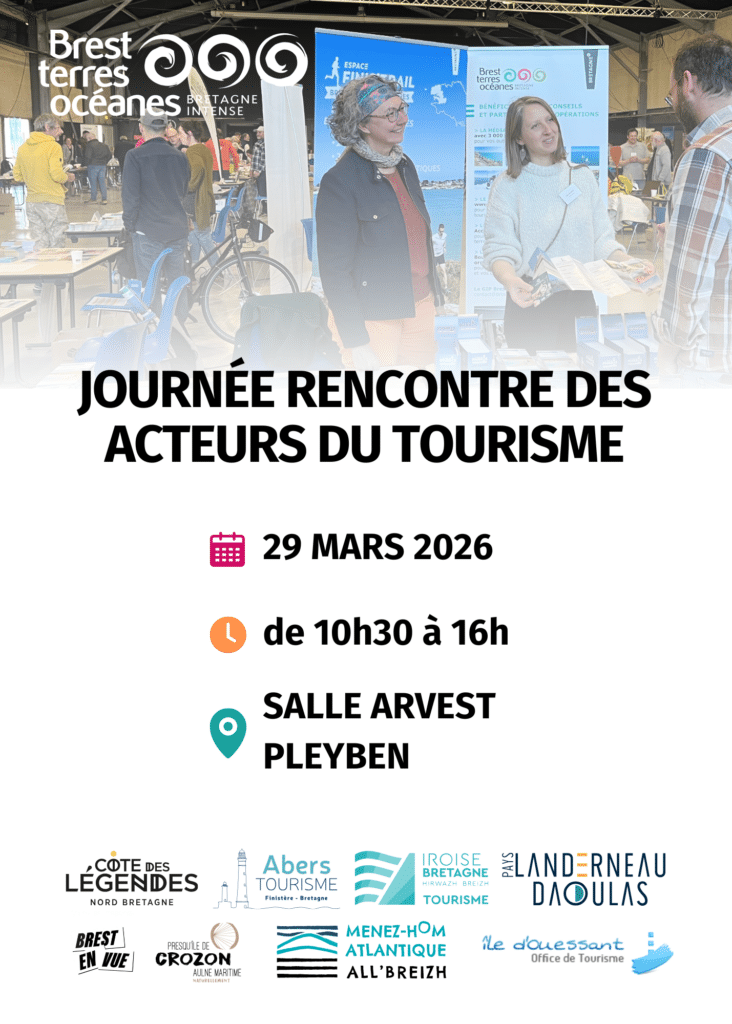 Le dimanche 29 mars, la destination Brest terres océanes, en partenariat avec l’office de tourisme Menez-Hom Atlantique, organise la Journée de rencontre des acteurs du tourisme à la salle Arvest à Pleyben.