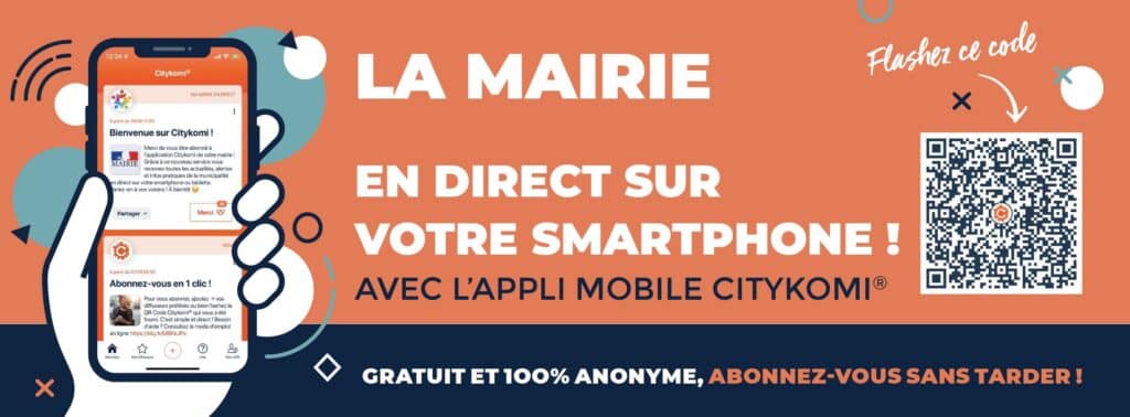 La municipalité vous informe sur smartphones et tablettes avec un nouveau service de notifications en temps réel. Soucieuse de moderniser sa communication et répondre ainsi aux attentes de ses habitants, la commune s’est dotée tout récemment de l’application Citykomi®. Téléchargeable gratuitement à partir des plateformes App Store (iPhone) et Play Store (Android), Citykomi®, c’est son nom, vous permet de rester connectés pour recevoir la bonne information au bon moment. Plus besoin de chercher ! Très simple à utiliser et très efficace, Citykomi® vise d’abord à faciliter la vie des habitants dans leur quotidien : ainsi chacun peut recevoir directement les informations ou les alertes propres à la vie locale : un imprévu, des horaires d’accueil qui évoluent, un chantier qui débute, des intempéries, un rendez-vous associatif, etc.